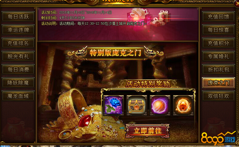 活动内容:活动期间,每天充值一定数量的元宝,即可领取豪礼,不要错过哦!