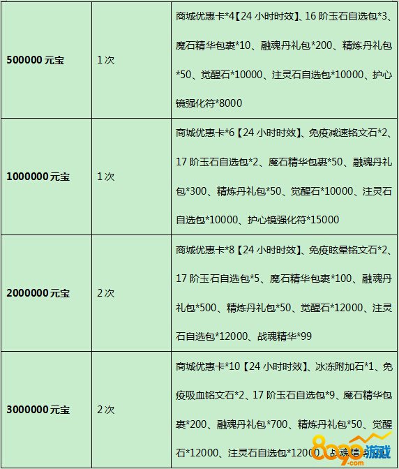 活动内容:活动期间内,以优惠价格出售3级和5级熔铸结晶大礼包。