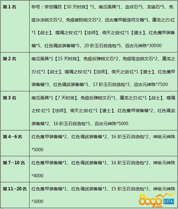 活动内容:活动期间内,累计消费200000充值元宝即有资格进入全平台排名,并领取达标奖励。活动结束后以邮件形式发放排名奖励,达标奖励需要手动领取。