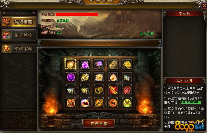 1. 活动期间每充值5000元宝即可活动1次开启宝藏的机会。