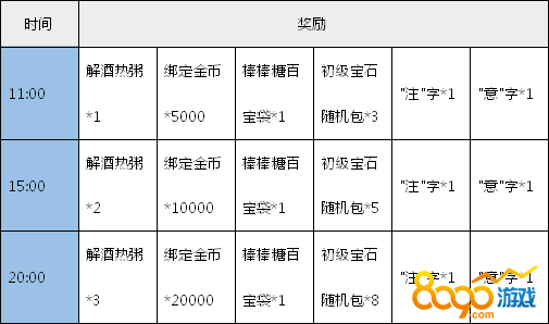 【活动内容】:野外挂机,将有概率获得道具:注、意、交、通、安、全,兑换即可得到精灵进阶石、解酒热粥和交通安全礼包!