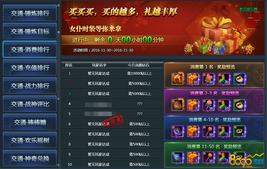 【活动内容】:买买买!活动期间,消费越多,奖励越丰厚,珍藏极品道具等你来拿!