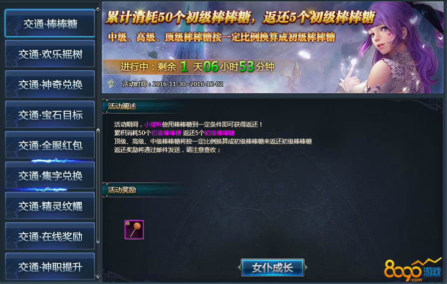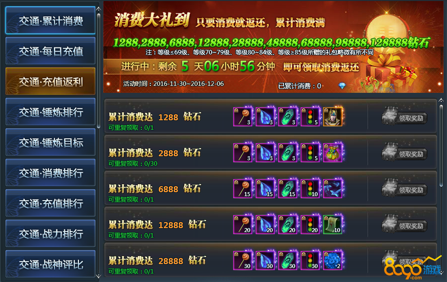 【活动内容】:活动期间累计消费达到一定额度即可全面返还豪礼!大量初级棒棒糖、神迹提升石、绕体の神鸟、红绿灯、超级/顶级技能包,极品道具不可错过!