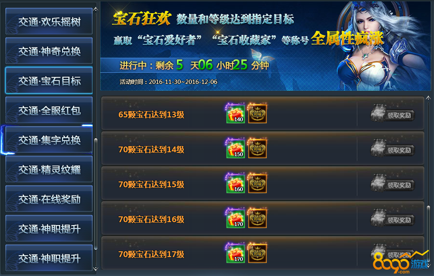 70颗宝石达到16级,即可获得“宝石之源”称号,全部宝石属性提高50%