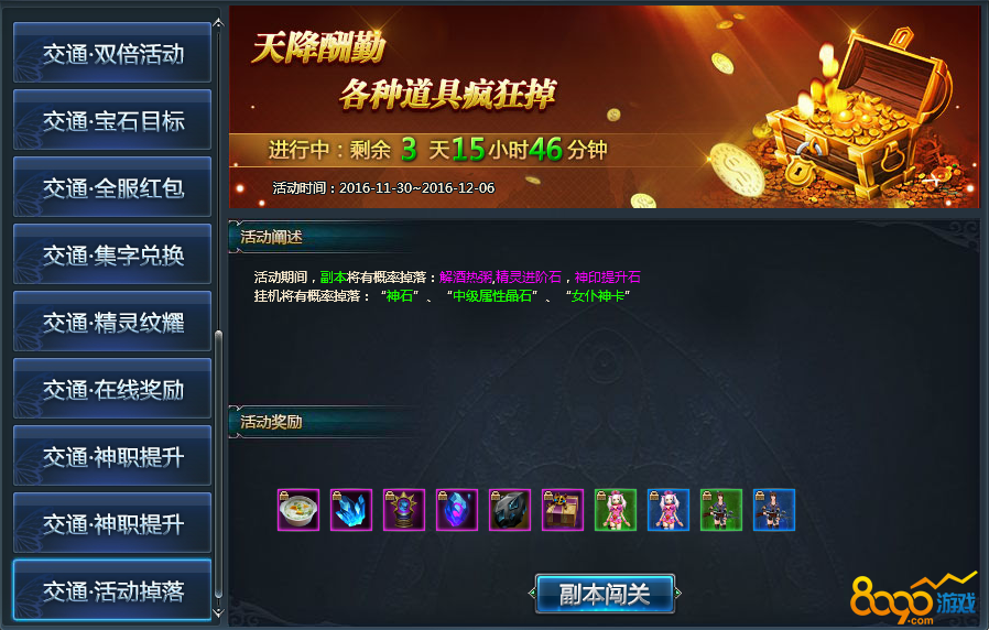 【活动内容】:活动期间,副本将有概率掉落:解酒热粥,精灵进阶石,神印提升石
