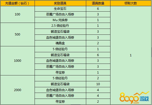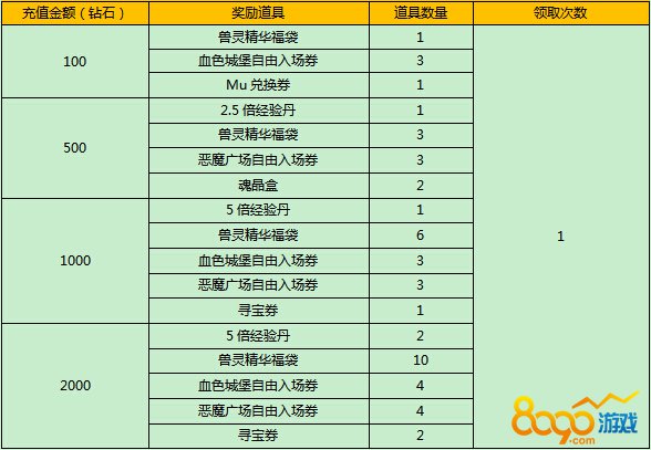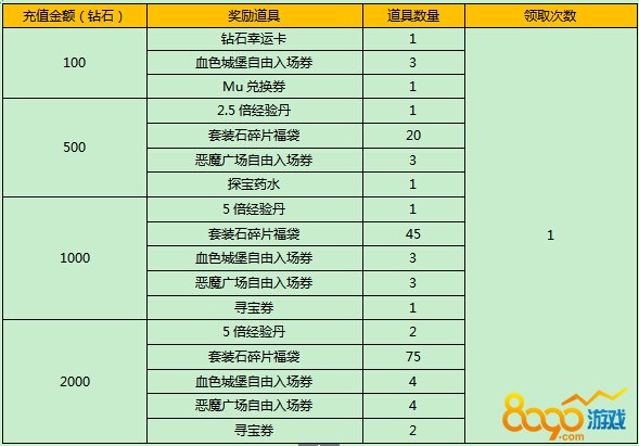 活动五:单笔充值