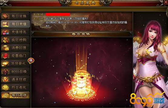 【活动说明】:每日充值达到88888、288888元宝,即可免费领取一个稀有道具!可花200元宝刷新!