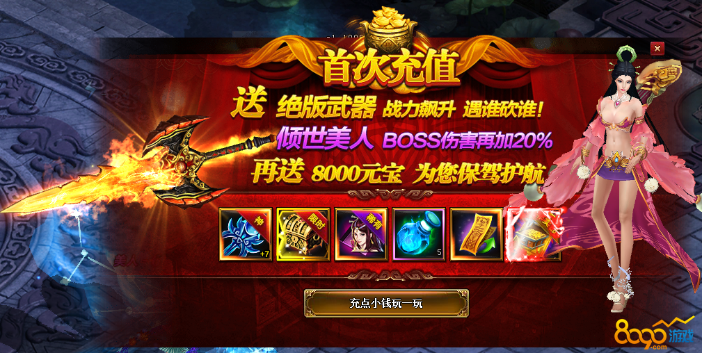 搜索"8090网页游戏"活动一:首次充值