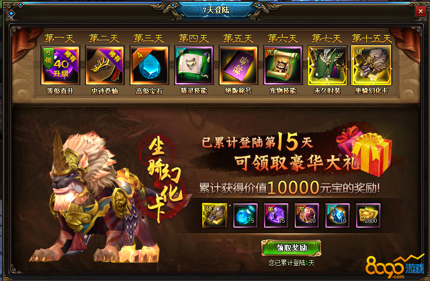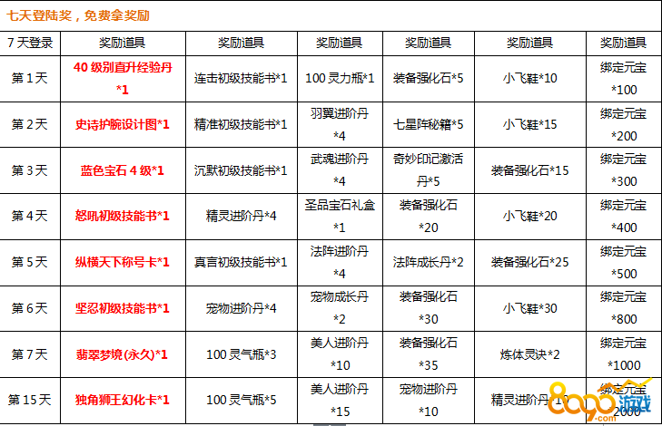 【活动内容】开服15天内,天天登录都可以拿好礼,还等什么!