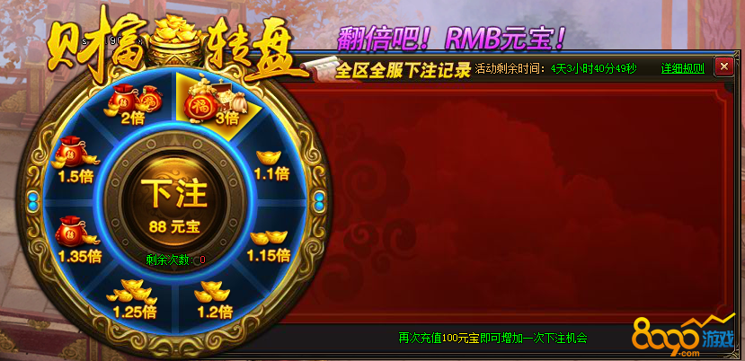 活动九:财富轮盘,让你的RMB元宝翻倍