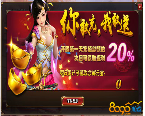 【活动内容】开服首日,充值总额的20%次日即可领取!