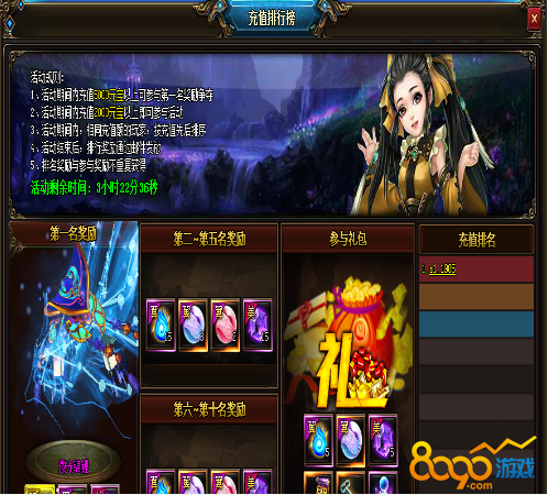 1、活动期间,充值5000元宝以上可参与第一名奖励争夺