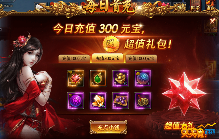 统计累计充值688元宝的天数,达到指定天数,可以领取对应的丰厚奖励。