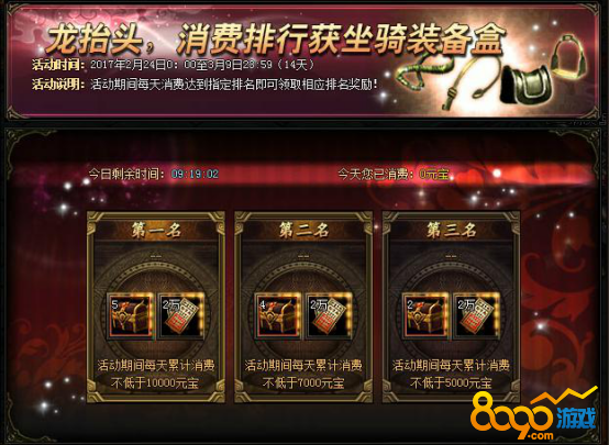 【活动内容】活动期间,每天消费达到指定排名即可领取相应排名奖励!
