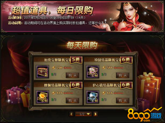 【活动内容】活动期间,可在活动界面购买限时折扣道具,还等什么?!打开随机宝箱将有机会获得高额道具奖励,不容错过~