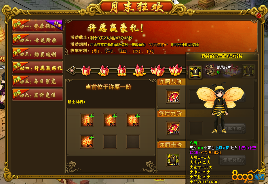 活动规则:活动期间内,参与集字活动即可领取许愿豪礼。
