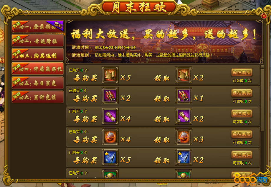 活动规则:活动期间,购买对应道具即可直接领取返利道具。