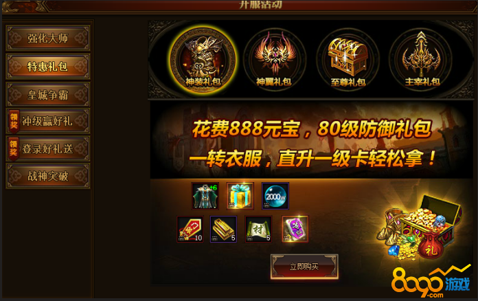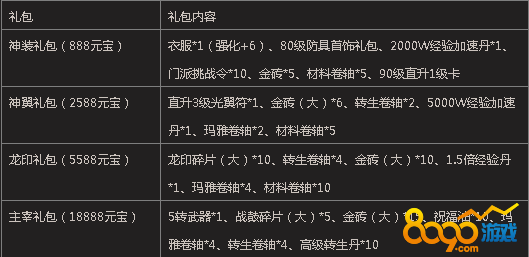 活动内容:7转首饰礼包、10000绑定元宝、城主之刃、专属神力;