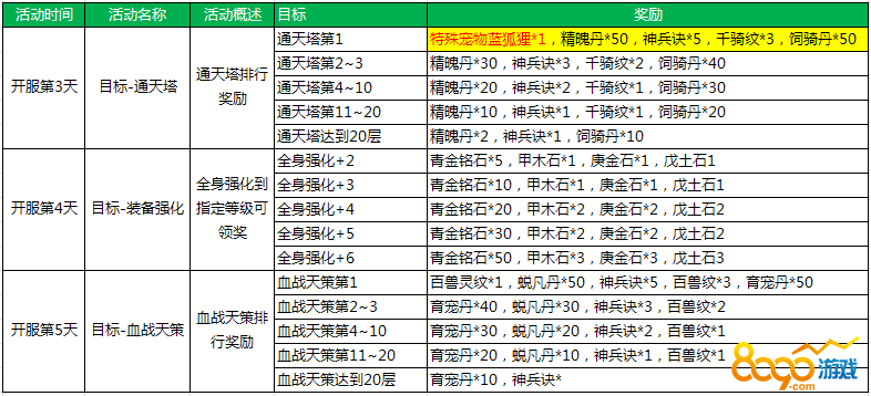 新服活动6:目标排行--通天塔、装备强化、血战天策