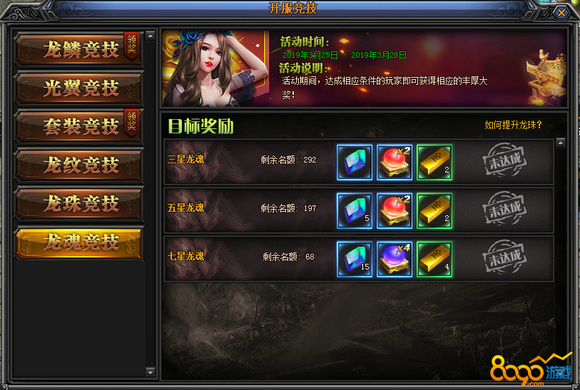 活动详情:活动期间,龙珠等级达成相应条件的玩家即可获得相应的丰厚大奖!(开服第四天开启)