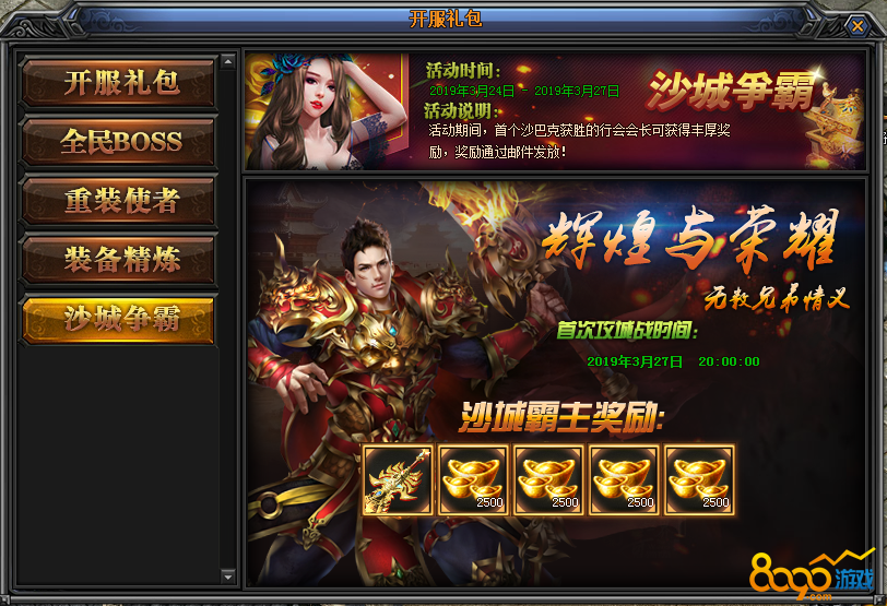 活动详情:活动期间玩家可以花费少量元宝购买礼包,性价比超级高,只在开服前7天可购买
