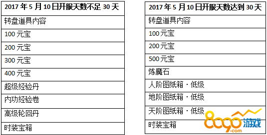 转盘道具内容根据开服天数不同而不同,具体内容如下: