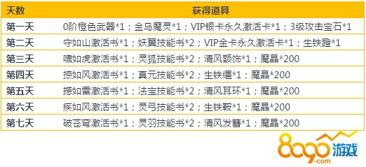 【活动内容】每日首次登录游戏,即可对应奖励。