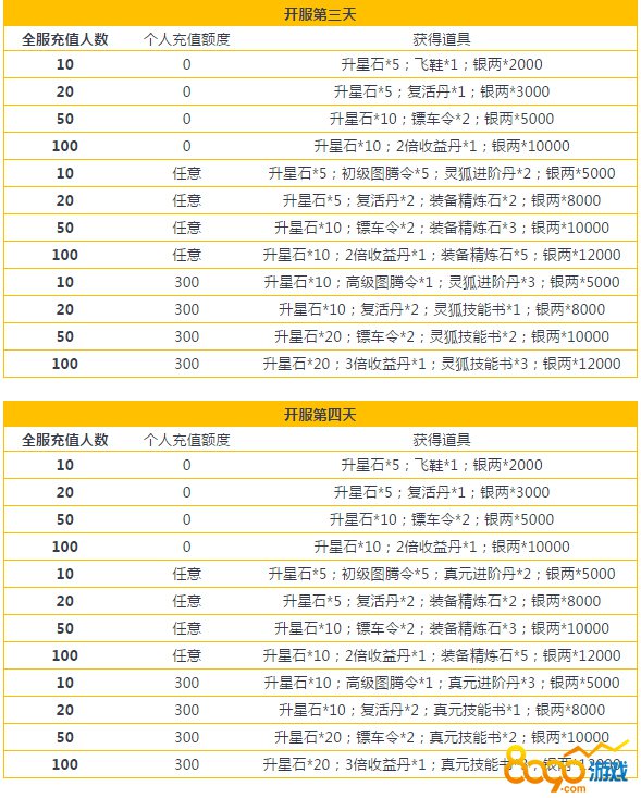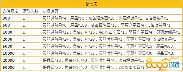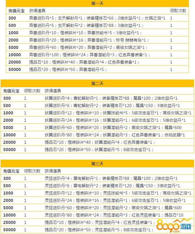 【活动内容】活动期间每日充值对应元宝,即可领取相应奖励。