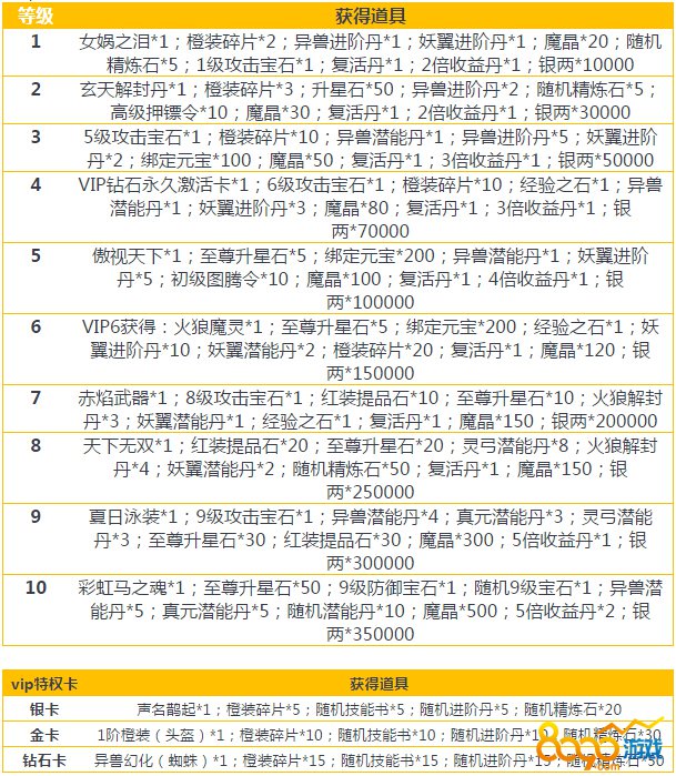 【活动内容】达到对应vip等级,即可领取相应奖励。