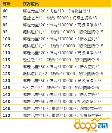 【活动内容】角色达到对应等级,即可领取相应奖励。