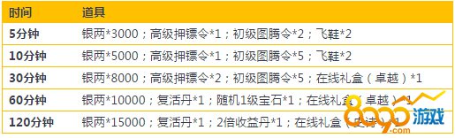 【活动内容】在线时长达到对应时间,即可领取相应奖励。