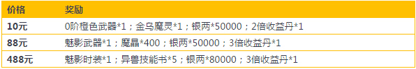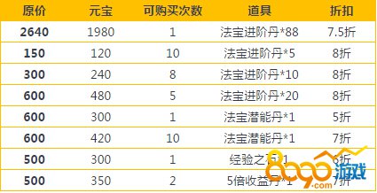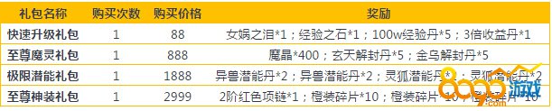 【活动内容】活动期间花费对应元宝,即可获取超值礼包。