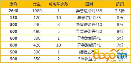 【活动内容】活动期间,购买以下道具可享超值折扣。