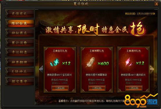 • 传奇霸业7月6日-8日夏日狂欢活动 神秘商店限时钜惠