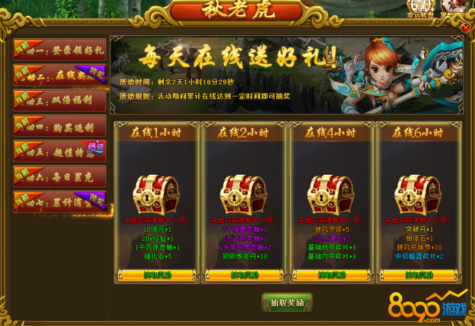 活动规则:活动期间内,达到相应的在线时间即可进行抽奖。