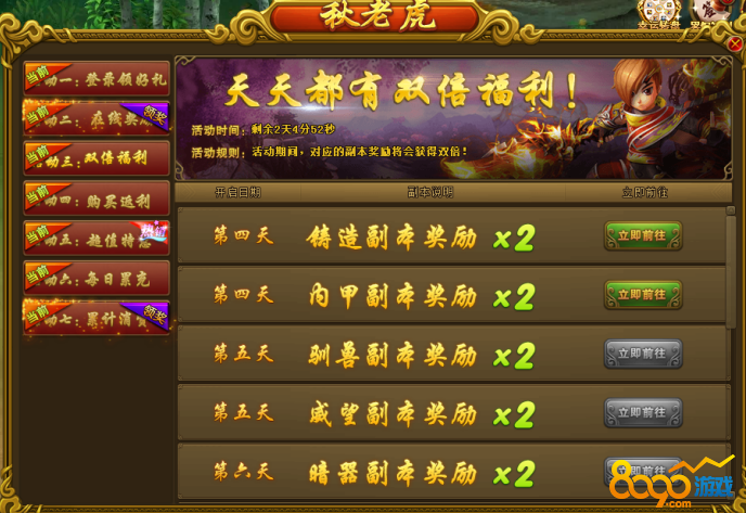 活动规则:活动期间,对应的副本奖励将会获得双倍。