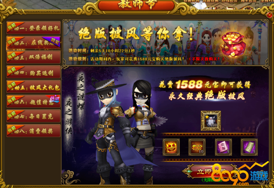 活动规则:活动期间内,花费元宝可购买绝版披风礼包。