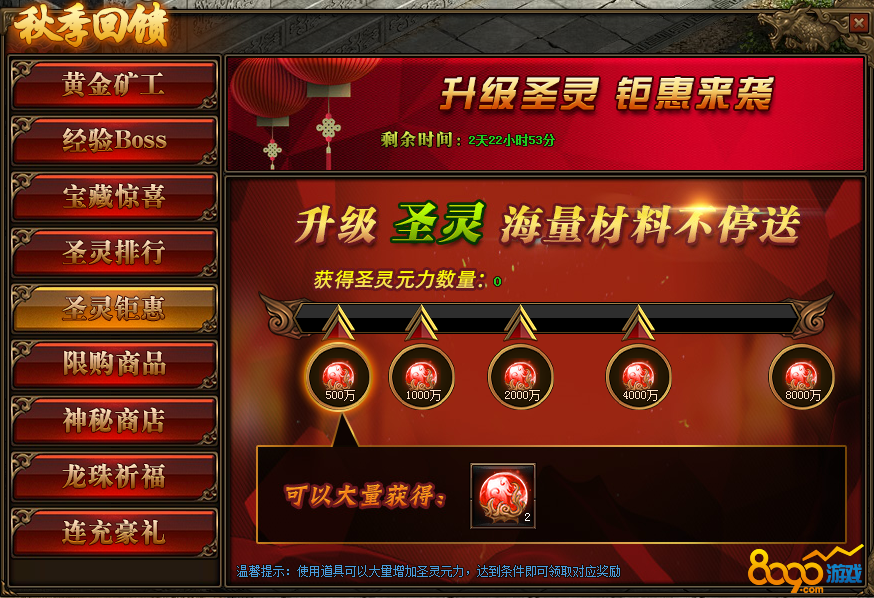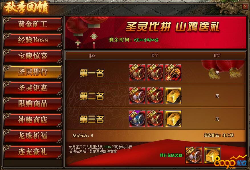 1、活动期间,玩家获得圣灵元达到1500W即可参与排行;
