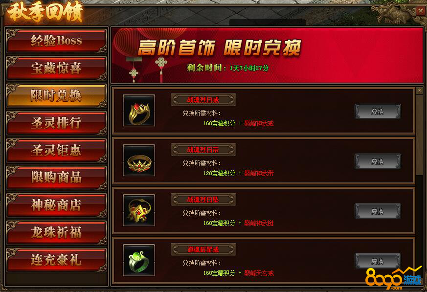1、活动期间,玩家可使用寻宝积分兑换沙魂首饰;