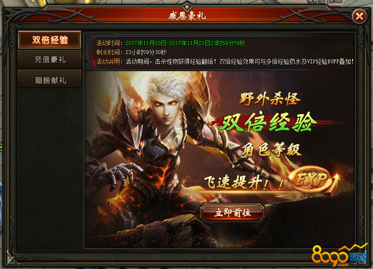 活动说明:活动期间,击杀怪物获得200%经验