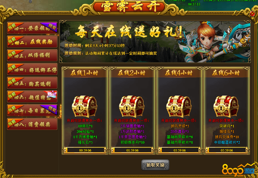 活动规则:活动期间内,达到相应的在线时间即可进行抽奖。