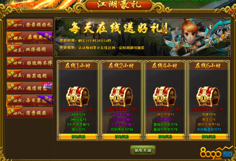 活动规则:活动期间内,达到相应的在线时间即可进行抽奖。