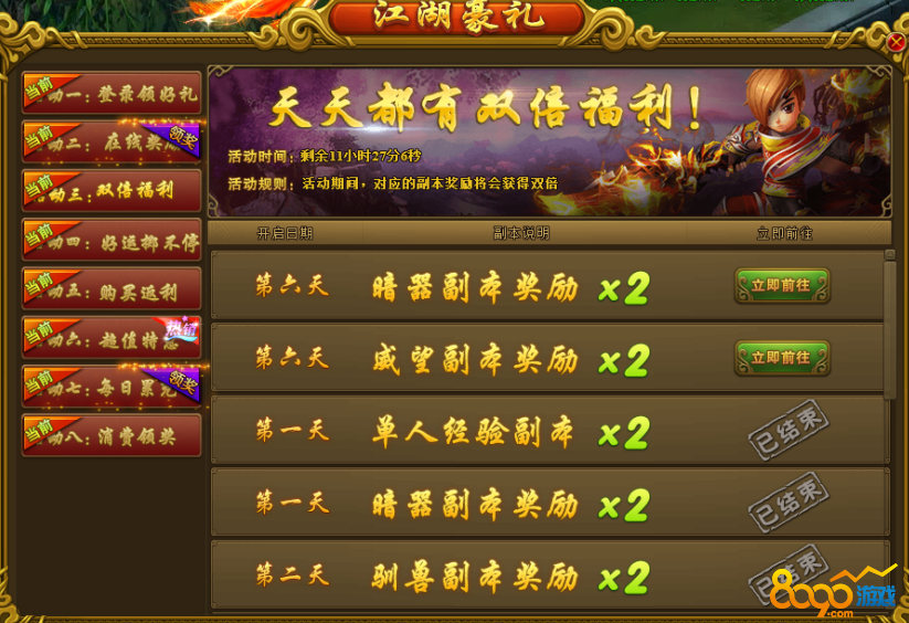 搜索"8090网页游戏"《热血江湖传》“江湖豪礼”活动
