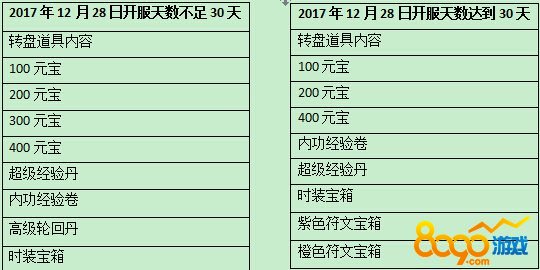 转盘道具内容根据开服天数不同而不同,具体内容如下: