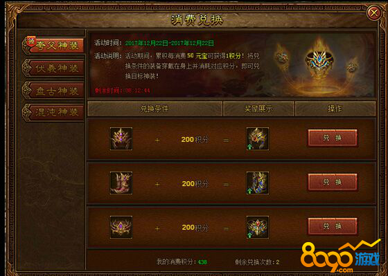 活动内容:活动期间每消费50元宝可获得1积分,积分可兑换超值奖励