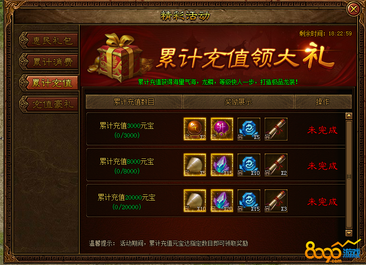 搜索"8090网页游戏"活动一:累计充值