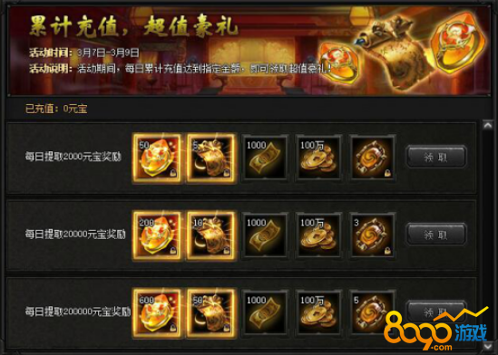 【活动内容】活动期间,每日充值达到指定金额,即可领取超值豪礼!