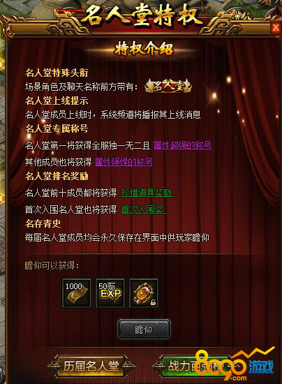 • 传奇荣耀5月2日-8日名人堂活动 领取强悍称号