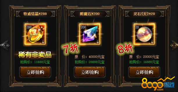 【活动内容】活动期间,稀有道具每天限购一次,超低价格,不容错过!