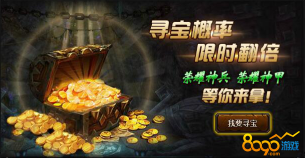 【活动内容】活动期间,城主宝藏寻宝概率限时翻倍,荣耀神兵、荣耀神甲、荣耀战纹等你来拿!